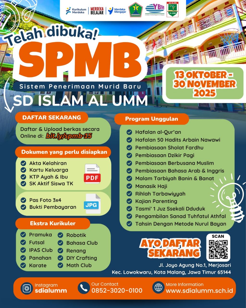 SPMB Sekolah Dasar Islam Al-Umm Malang Tahun Ajaran 2026 / 2027